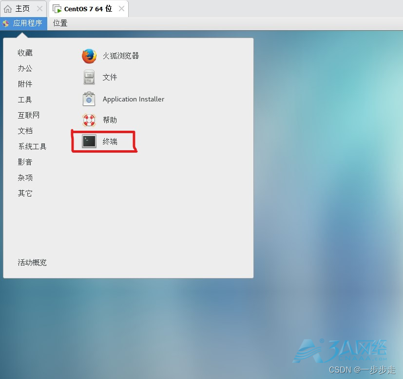 1.点击 应用程序->终端