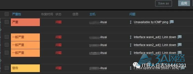 早晨8点多,收到Zabbix的邮件告警,显示客户的戴尔服务器和爱快路由器掉线了,由于该客户的机房之前有过多次停电,症状当然也是如此这般,加上客户没有电话或者微信报修,就先入为主地判定为机房又停电了,因此未采取任何措施。