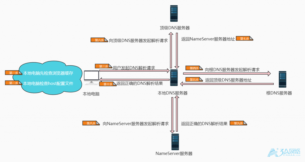 - 10、 LDNS把解析的结果返回给用户,用户根据TTL值缓存到本地系统缓存中,域名解析过程至此结束